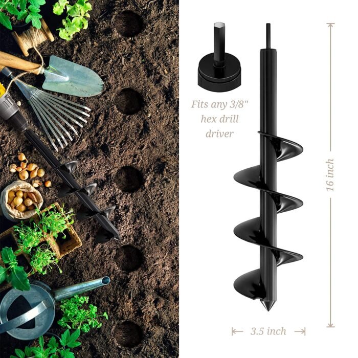 • TOSS YOUR TROWEL: You won’t need your gardening shovel with these auger drill bits. 16 inches long, made of high quality and heavy-duty steel, each garden drill planter is designed to do all the work of digging holes for you, without you needing to put your back into it. Works on loose soil, hard ground, sand,
