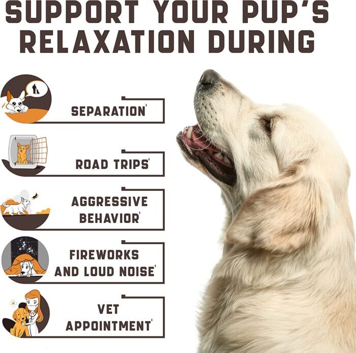 - Help Promote Calmness: dog calming chews with valerian root & passionflower support your pup’s relaxation during worrying situations like storms, fireworks, or separation. They help your pet stay peaceful & friendly.