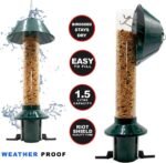 - WEATHER PROOF & WATERPROOF – KEEPS SEED DRY & FRESH – The PestOff bird feeder has a built in weather guard to keep the seed fresh and dry to prevent seed clogging. Seed clogging is a common problem with other weight activated bird feeders that have no seed protection.